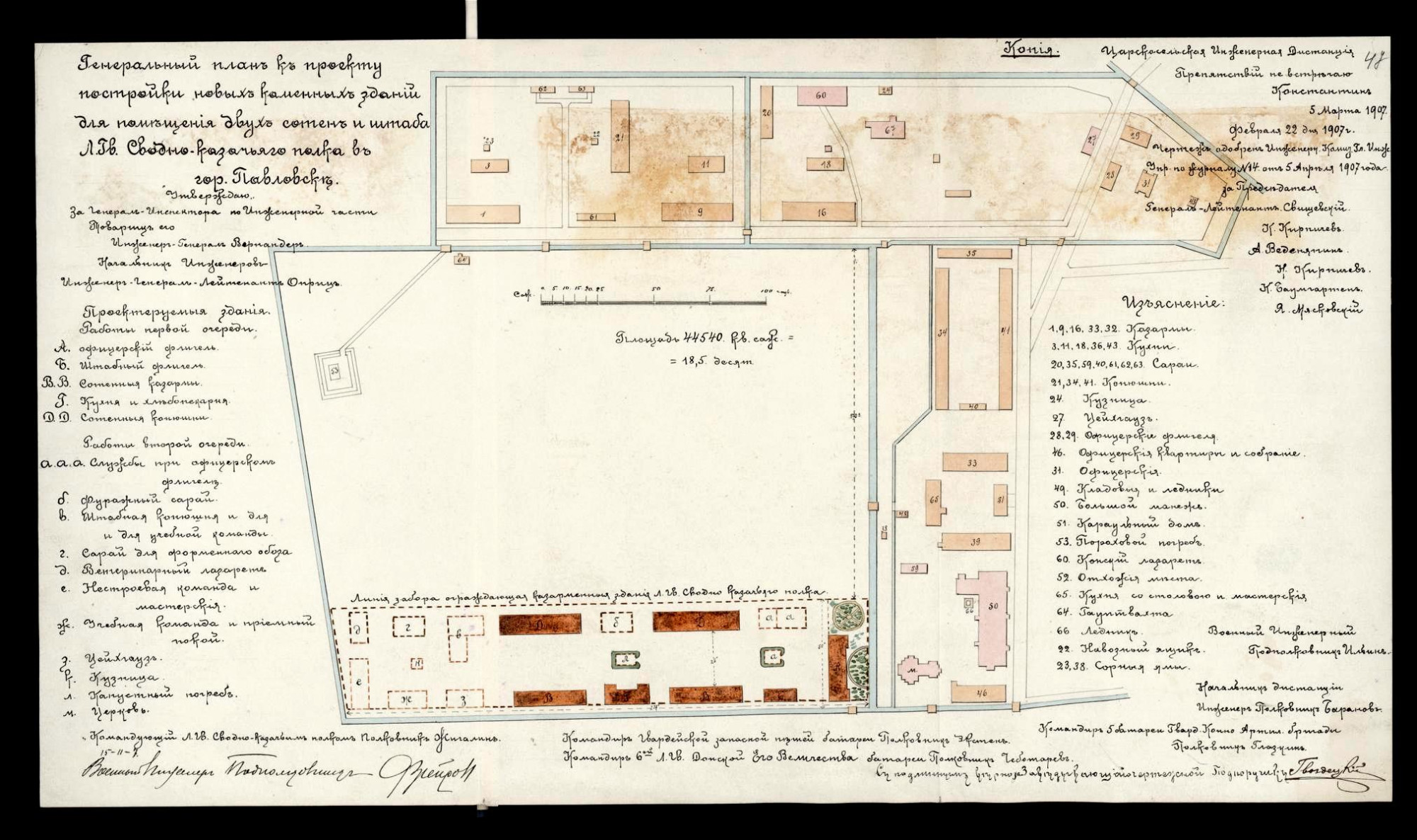 Сотни дислоцировались: 1-я — в С.-Петербурге (на ул. Караванной), 2-я — в Гатчине, 3-я и 4-я сотни, штаб и команды полка — в Павловске, в специально выстроенных (к осени 1907 года) 2-этажных каменных казармах.